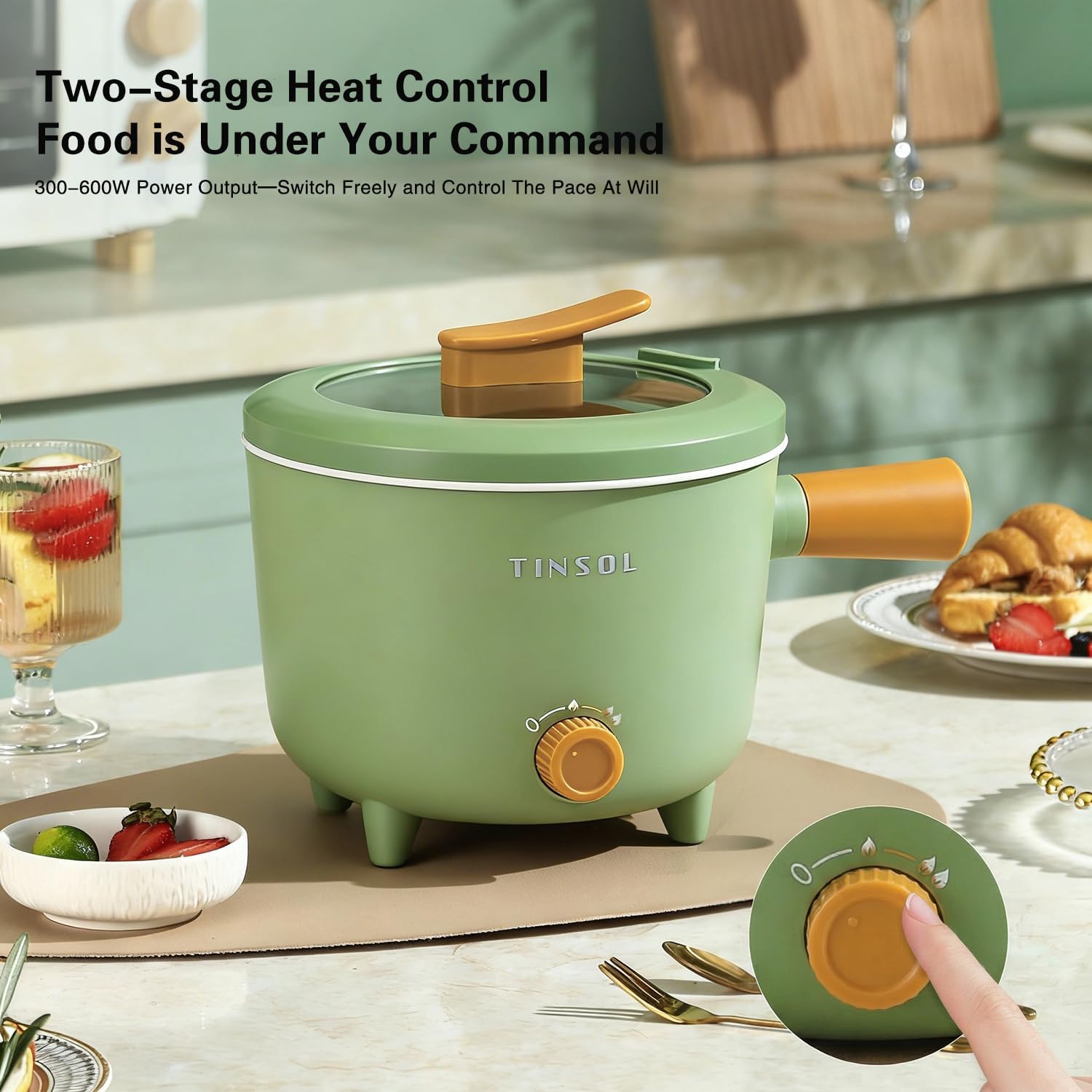 TINSOL 2L Mini Rice Cooker Dual Power Settings This electric kettle features dual power settings (300W and 600W) for convenient adjustment based on your needs.At 300W, you can prepare soups, porridge, oatmeal, and soft-boiled eggs.For boiling noodles, pasta, dumplings, or making sushi, switch to the high-power (600W) setting to bring water to a boil faster. Start Healthy Eating. The interior features 304 food-grade stainless steel, while the lid uses thickened tempered glass, ensuring food remains uncontaminated and safeguarding your health. Enjoy Cooking with the TINSOL Rice Cooker This rice cooker replaces multiple common kitchen appliances, revolutionizing your weekday cooking routine and making meal prep effortless and convenient. It's perfect for any occasion. On weekdays, bring it to the office for quick lunch and dinner prep.Travel and camping enthusiasts can use it to cook local ingredients or prepare delicious meals tailored to their dietary needs.Plus, host a hot pot party with friends using this versatile appliance.