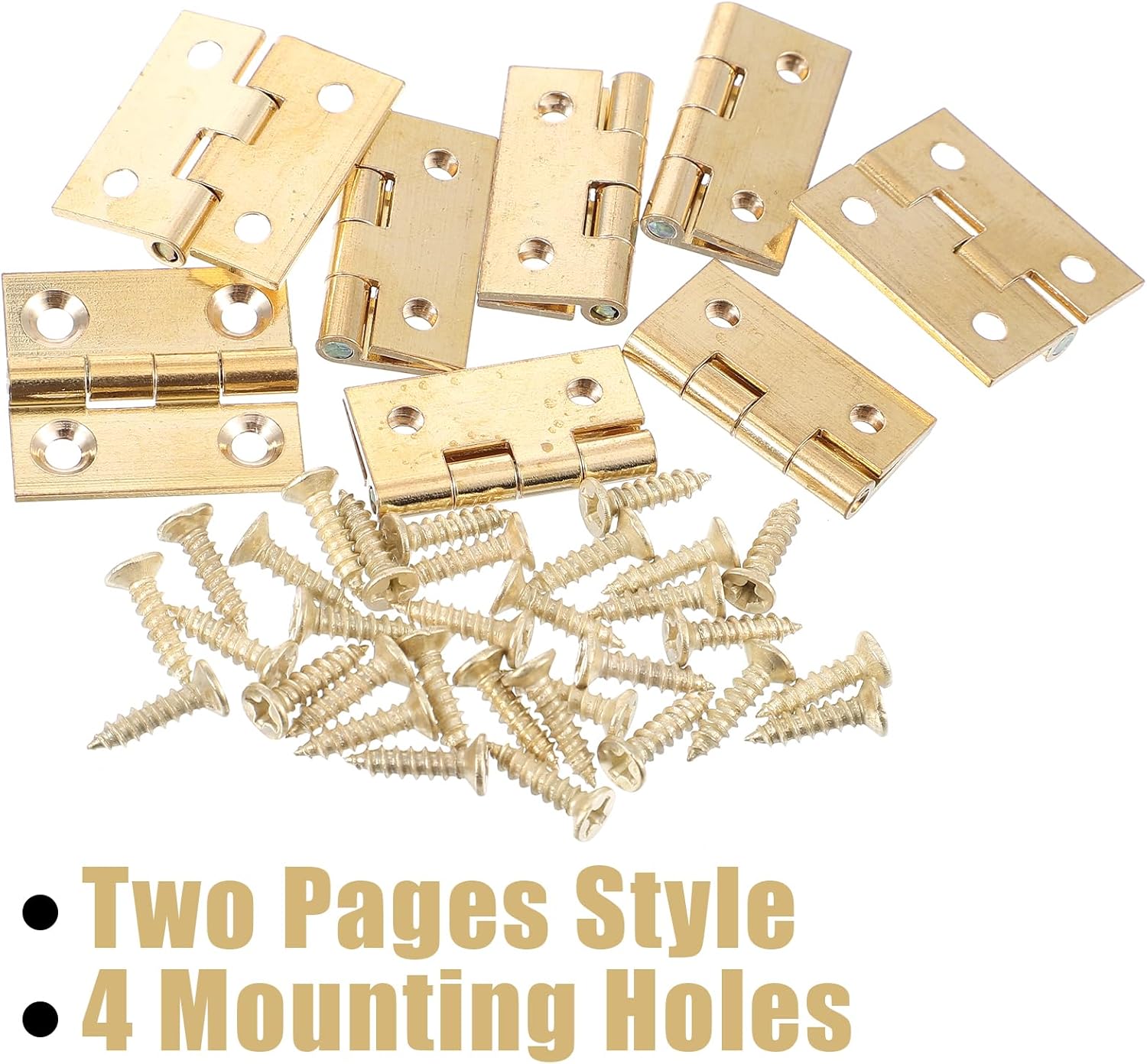 Color: BrassMaterial: BrassSingle Size: 1x1inHole Distance: 13mm/1inHole Size: 4mm/1inPackage Contents: 8 sets of mini solid brass hinges