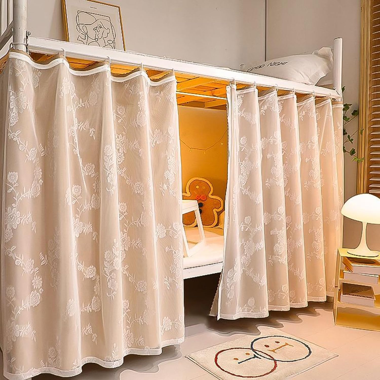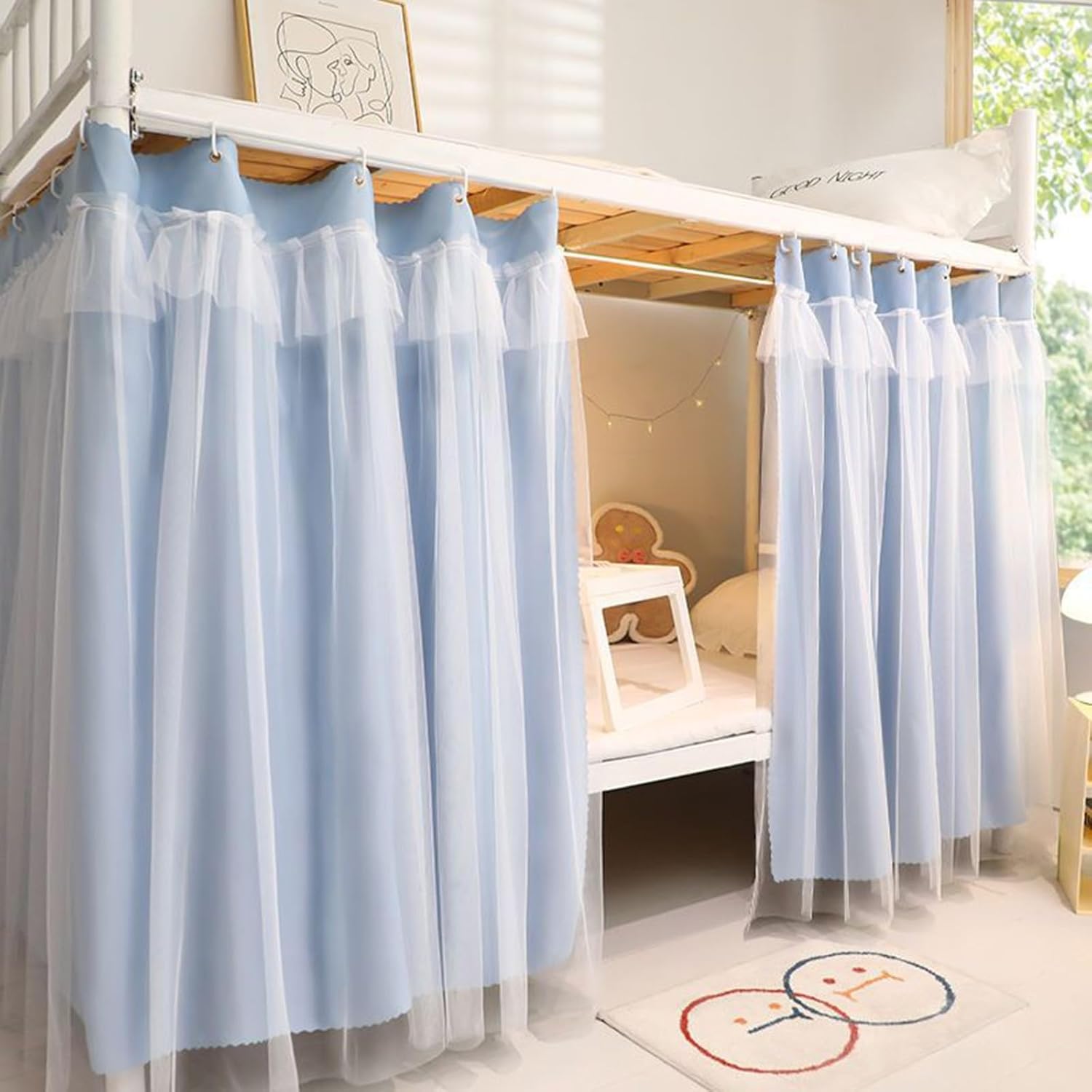 Dormitory bed curtain | White jacquard yarn blackout bed canopy | Princess style student dormitory bed drapes | Dormitory lower bunk bed valance.★ Double-sided high-precision fabric bed surround, smooth and light-blocking.★ Physical light-shielding, dust-proof, breathable and light-proof.★ Strong metal ring with punched holes design, easy to install, beautiful and durable.★ 99% strong blackout bed hangings, paired with white tulle to create a romantic atmosphere.SpecificationProduct Fabric: High-Precision FabricColor: Pink 1, Blue 1, Beige 1, Gray 1, Pink 2, Blue 2, Beige 2.Size:Length: 200cm=79",Height (Width): 120cm=47"; 150cm=59".Package Includes:2 * Bed CurtainsNotes:1. Since the size is measured manually, there may be an error of 1-3 cm.2. If you have any questions about our products, please contact us directly. We will provide you with a satisfactory solution.3. Due to differences between different monitors, there may be slight color differences in the pictures.