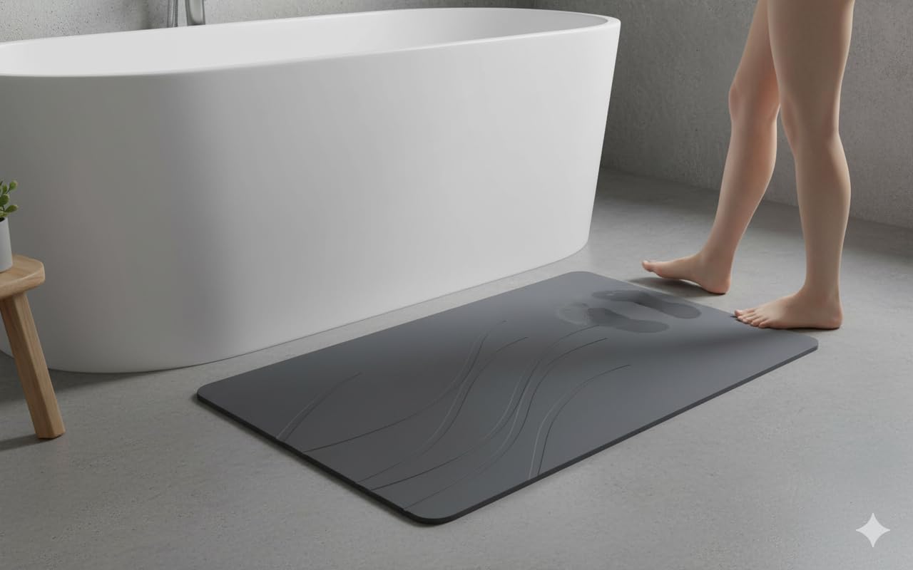 Elevate your bathroom experience with this innovative stone bath mat featuring a sophisticated wave pattern design in pristine white. Made from a unique combination of diatomaceous earth and recycled paper, this Sally Pacific bath mat offers exceptional moisture-wicking properties that allow it to dry instantly through natural evaporation. The mat's solid construction, measuring 23 x 15 inches with a 0.35-inch thickness, provides ample standing space while maintaining a modern, minimalist profile. Unlike traditional fabric mats, this hard shower rug delivers superior absorption while preserving its clean appearance through daily use. The distinctive wave pattern not only adds visual interest but enhances the mat's water-dispersing capabilities. The non-slip bottom surface ensures stability and safety, while the mat's natural composition makes it a thoughtful choice for your home. Ideal for placement in front of showers, bathtubs, or sinks, this mat seamlessly combines contemporary design with practical functionality. Transform your bathroom into a safer, drier space with this innovative bath mat that maintains its fresh appearance day after day.