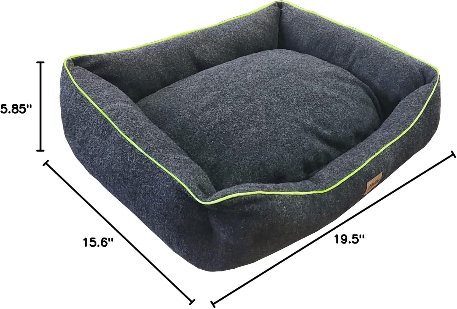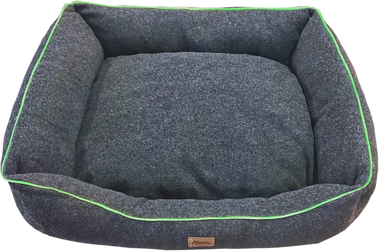 Warm and cozy baked wool dog bed for your dog, warm and soft padded dog bed with fluo green border (50 x 40 x 17 cm).