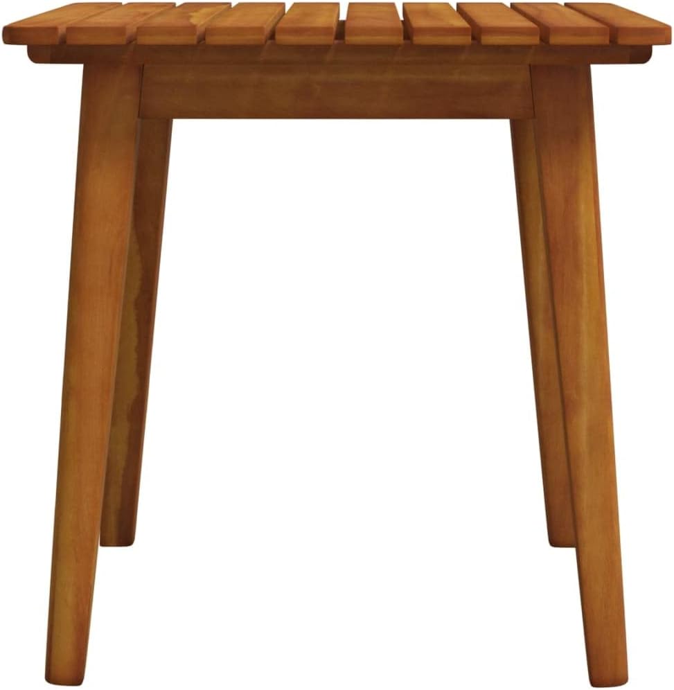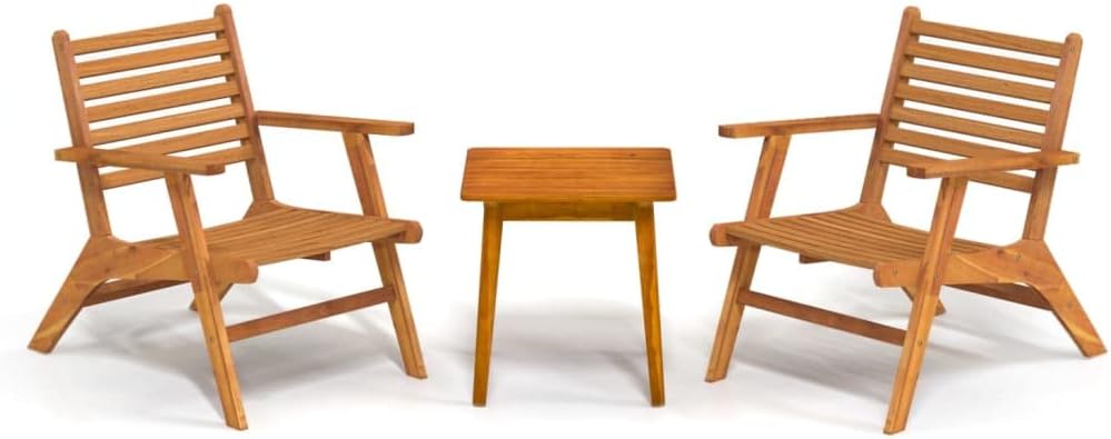 Create a compelling and cohesive aesthetic in your outdoor space with this patio dining set!This dinner set is made of solid acacia wood, making it stable and durable. With an oil finish, this outdoor dining set is easy to clean. The relax chairs feature a classic slatted design for comfortable seating. Bring this patio dinner set to add a touch of fun and comfort to your garden or patio!Note: In order to extend the life of your outdoor furniture, we recommend you to clean it regularly and do not leave it outdoors without protection unnecessarily.Clean: Use a mild soap solution.Storing: If possible, store in a cool, dry place indoors. If the product is stored outdoors, protect it with a waterproof cover. Wipe and dry the excess water or snow from flat surfaces after a rain or snowfall. Allow sufficient air circulation to avoid moisture-related damage.Material: Solid acacia wood with an oil finishChair dimensions: 25.6" x 31.9" x 28.7" (W x D x H)Table dimensions: 17.7" x 17.7" x 17.7" (W x D x H)Seat height from the ground: 13.8"Assembly required: YesDelivery contains:2 x Chair1 x Table
