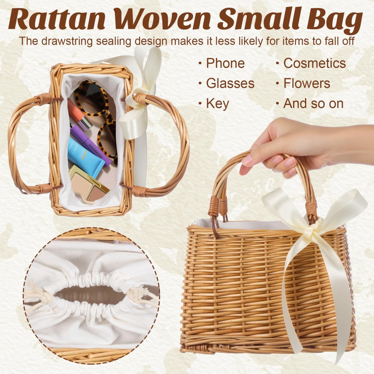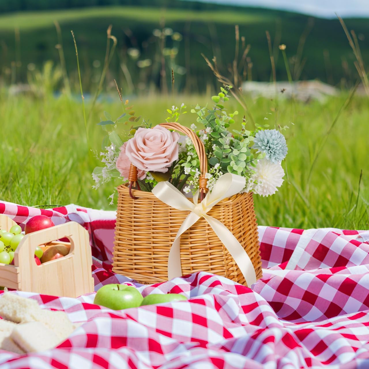 If you are looking for a rustic lifestyle piece, this decorative flower basket is great for you. It fits many interior styles, including modern farmhouse, bohemia. The decorative details will make your life more sophisticated and tasteful.Features- Material: Rattan and cotton fabric- Size:11.00X8.65X4.72in/28.00X22.00X12.00cm- This item can be used for a long time with nice materials.- It brings natural beauty to any indoor space.- Beautiful and lightweight, the basket is durable, contains no unsafe substances, clean and versatile.- It is also a great handbag for picnics.- The texture is fine, the design is fabulous, and the craftsmanship is delicate.Package Includes1 x Rattan Woven Bag