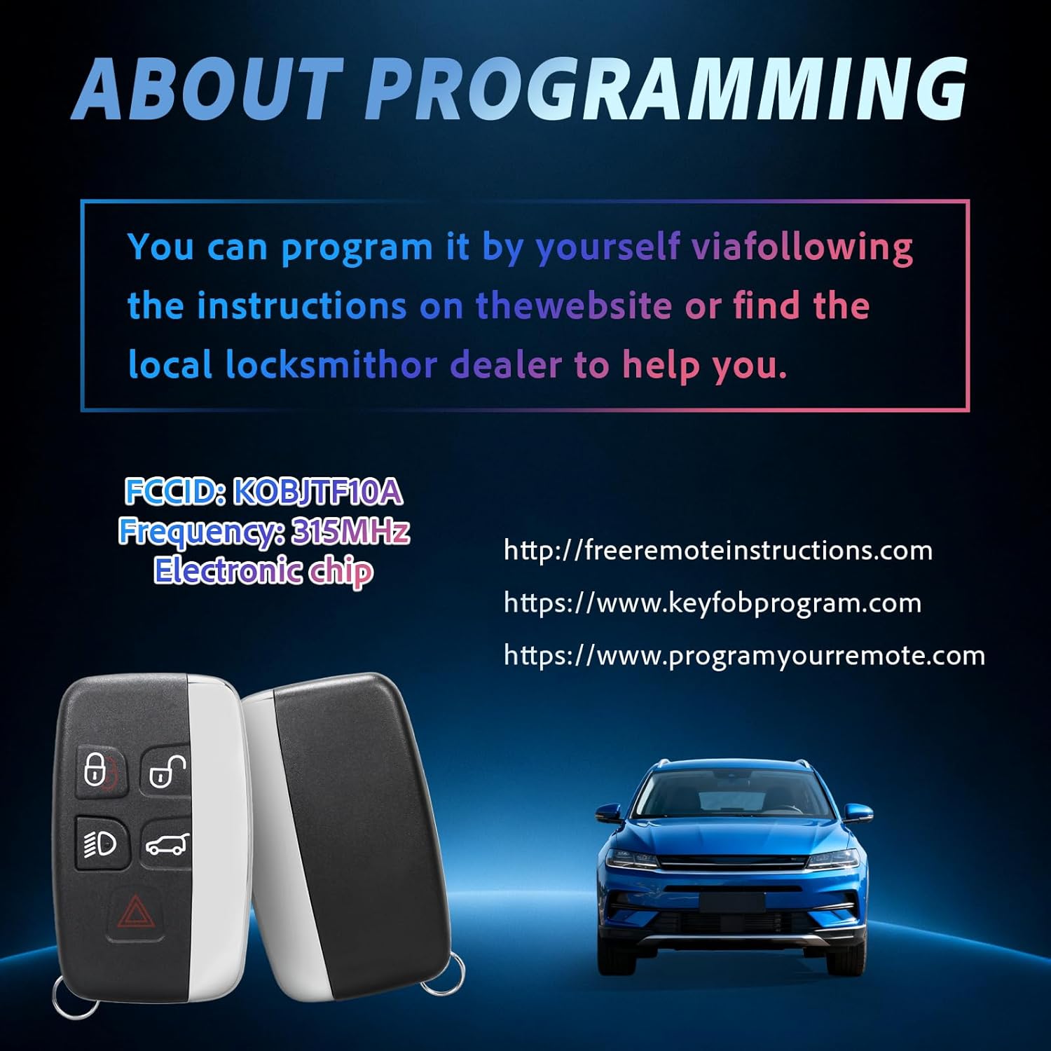 • 【Programming Instructions】It Requires Locksmiths or Dealership to Program it.Uncut key blades will need to be cut by a local locksmith or hardware store.Self-Programming is Not Available.