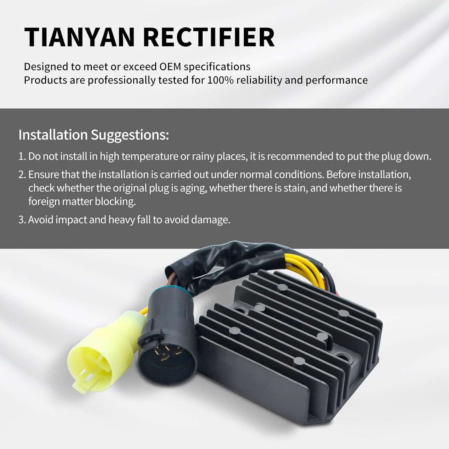 Brand: TIANYANProduct: Voltage regulator rectifierPackage Include: 1pcOEM Parts Numder: 21066-0047,21066-1112Product Applicable Models:For Kawasaki KLF300 Bayou 300 4x4 2003 20042005For Kawasaki KVF300 Prairie 300 1999 2000 2001 2002For Kawasaki KVF360 Prairie 360 2003 2004 2005 2006 2007 2008 2009 2010 2011 2012 2013For Kawasaki KVF400 Prairie 400 1999 2000 2001 2002For Kawasaki KVF650 Brute Force 650 4X4 2005 2006 2007 2008 2009 2010 2011 2012 2013 2014For Kawasaki KVF650 Prairie 650 4X4 2002 2003For Kawasaki KVF700 Prairie 700 4X4 2004For Kawasaki KSV700 KFX 700 2004 2005 2006 2007 2008 2009 2010 2011
