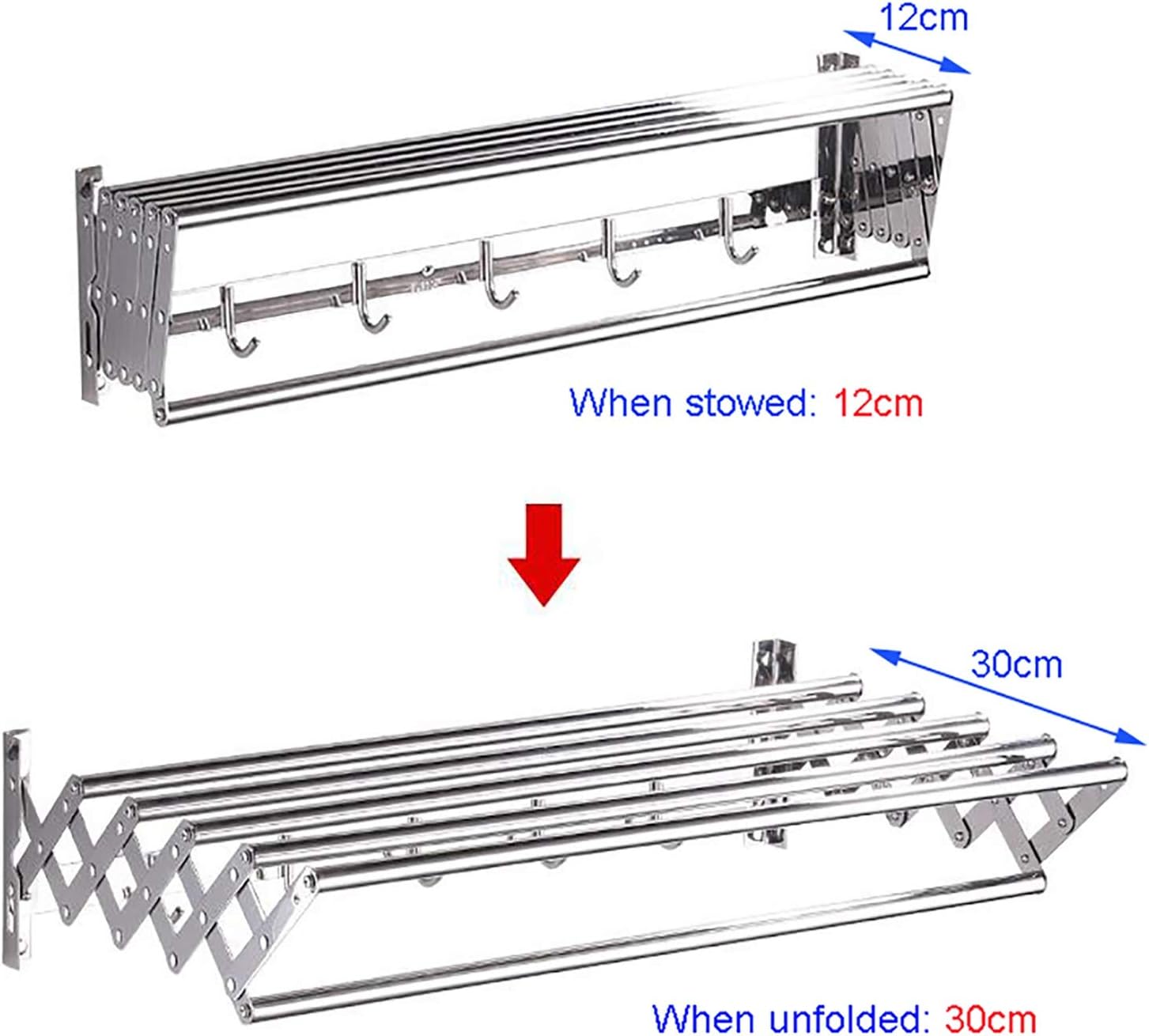Specifications: -Product name: Telescopic towel rack -Material : SUS304 stainless steel -Installation method: Hole installation - colour : Silver -Surface process: stainless steel wire drawing -Forming process: gravity casting -Installation accessories: expansion plugs, screws,Decorative cap Features: -Ideal for kitchen and bathrooms. -You can used to hang towel, bath towel and clothes. -Hang wall design,beautiful and practical, save a space. -Required screws and mounting bracket included,convenient for you to install.