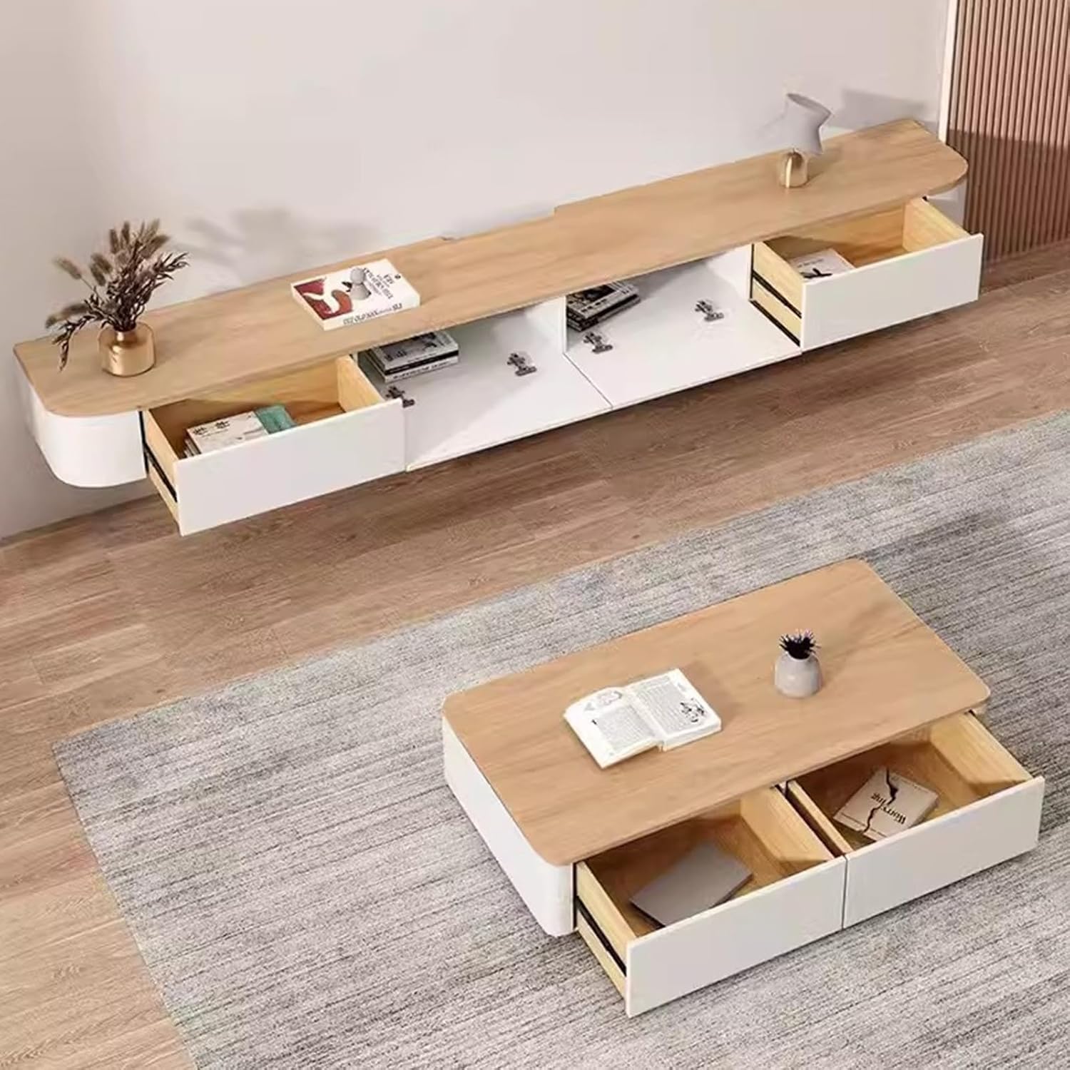 ➤This is a wall-mounted TV cabinet that suits a variety of decoration styles.➤Wall-mounted TV cabinet ➤Material: pine wood + multi-layer board➤Color: white+wood color➤Size: 140x24x20cm/55.1x9.4x7.9"160x24x20cm/62.3x9.4x7.9"180x24x20cm/70.9x9.4x7.9"200x24x20cm/78.7x9.4x7.9"220x24x20cm/86.6x9.4x7.9"240x24x20cm/94.5x9.4x7.9"➤Applicable occasions: living room, bedroom, study,reception room.➤Package list: TV cabinet + installation accessories➤Please note:●We are manually measuring, there may be 1-2CM error, please refer to the actual product, please understand.●Due to factors such as shooting technology, lighting, display parameters, etc., there may be slight differences between the actual color and the picture. Please refer to the actual product.