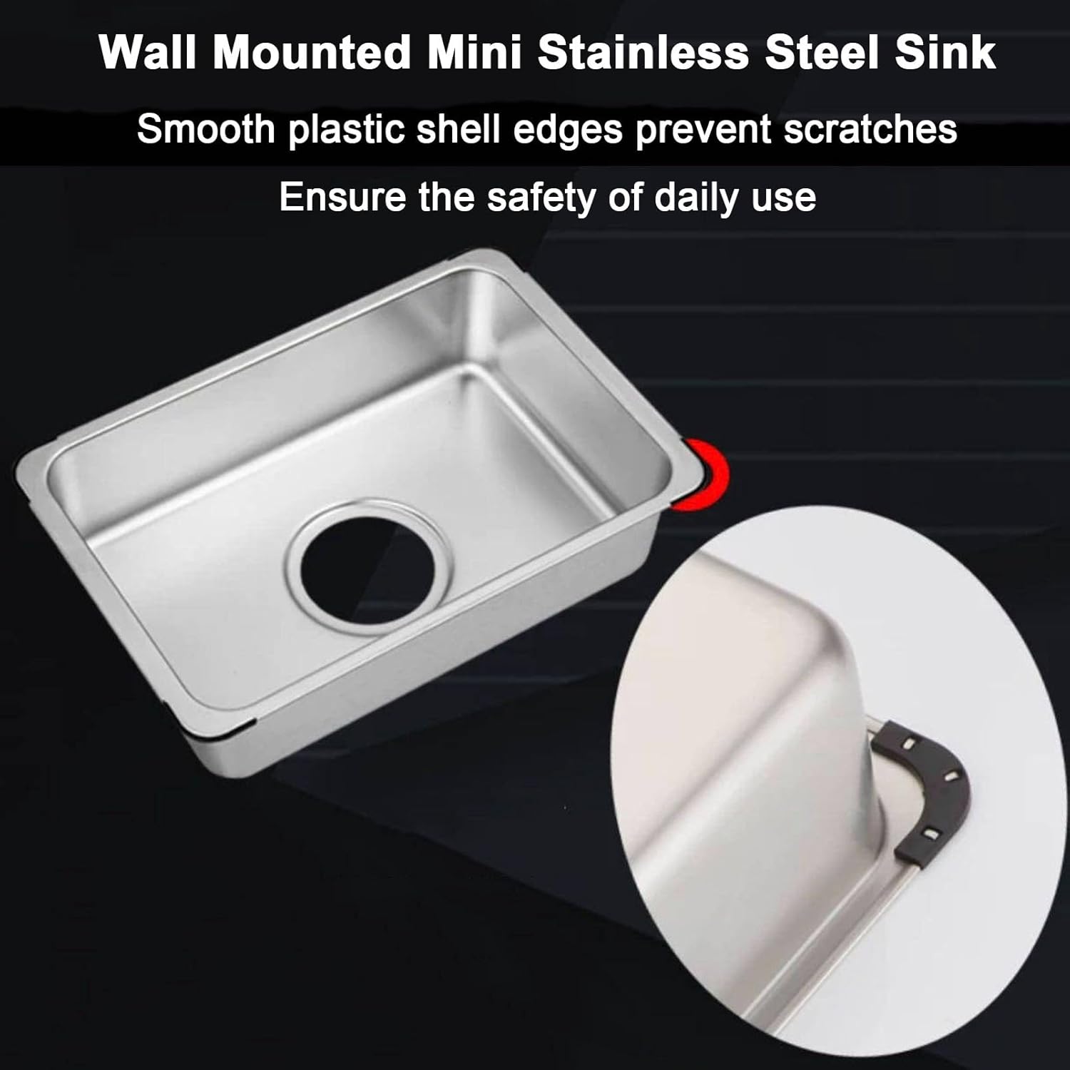 Upgrade your utility space with this Wall Mounted 304 Stainless Steel Sink—a heavy-duty compact utility hand washing station engineered for durability, space efficiency, and reliable performance. Whether outfitting a laundry room, balcony, garage, or small kitchen, this 304 stainless steel wall mount sink features sturdy construction, space-saving design, and hassle-free installation to meet all your utility needs.PRODUCT SPECIFICATIONSMaterial: stainless steelInstallation Type: Wall-mounted with triangular stainless steel mounting bracketSizes: 35cm (13.78in) L x 25cm (9.84in) W x 10cm (3.94in) D; 36cm (14.17in) L x 25cm (9.84in) W x 10cm (3.94in) D; 37.5cm (14.76in) L x 25cm (9.84in) W x 10cm (3.94in) DIncluded Accessories: Triangular mounting bracket, drainer, flexible downpipe, mounting screwsApplications: Laundry rooms, balconies, restaurant kitchens, schools, farms, industrial workspaces, utility rooms, small commercial areas, public utility zones