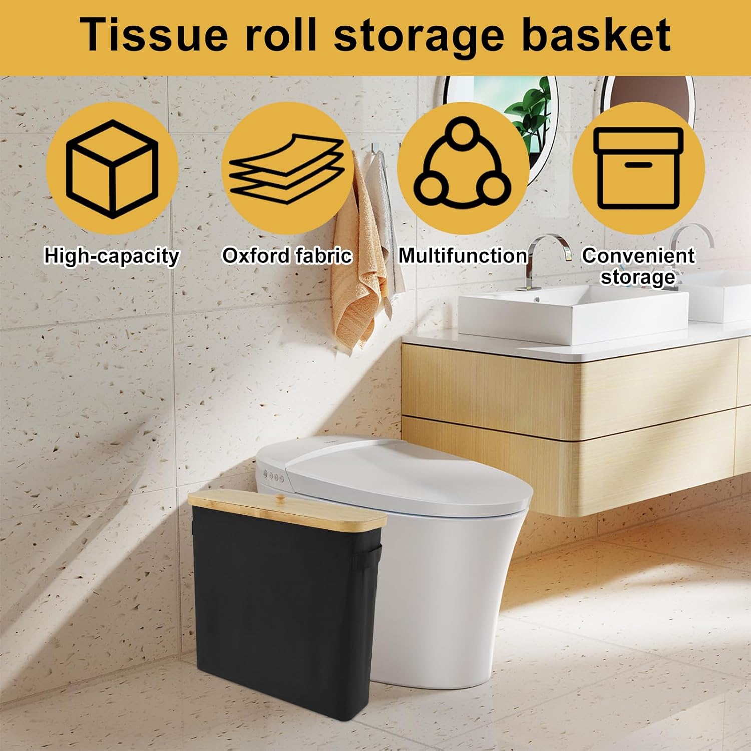 Parts List:1 x Toilet Paper Storage Basket1 x Lid1 x Screw1 x Lid KnobProduct Specification:Description:This toilet paper storage basket can be used to store paper roll, tampons, magazines or other bathroom accessories to keep your items organized and easy access. Handle design makes it easy to move. With knob on the lid, it is convenient to open the basket. Great for toilet, washroom, sink, RV or other tight spaces.Key Feature:Foldable: This toilet paper storage basket is foldable, which makes it compact for easy storage and take a little space in your bathroom when not in use.Specification:Product Name: Toilet Paper Storage BasketMaterial: Wood, Oxford Cloth, PolyesterColor: Black, GreySize: 45x41x15cm/17.72x16.14x5.91 inchNote:1.There may be slight differences between the picture and the actual color of the commodity. We will try our best to show you the exact color.2.Please allow slight dimension difference due to manual measurement.
