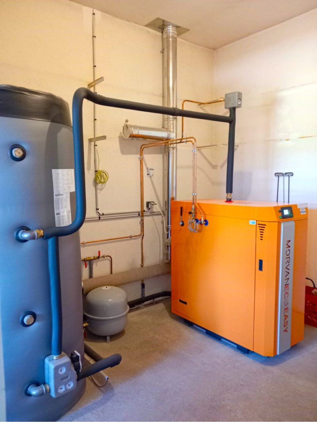 À Avallon, une maison a remplacé son ancienne chaudière fioul par une ECO EASY 25 kW associée à un ballon tampon de 1000 L. Performante et simple à utiliser, cette chaudière à bois offre un rendement élevé de 93 %, une grande porte de chargement pour les bûches et une régulation intégrée permettant de piloter le chauffage et l’eau chaude sanitaire. L’installation assure un confort thermique optimal, fiable et durable, tout en s’inscrivant dans une démarche de transition énergétique locale.